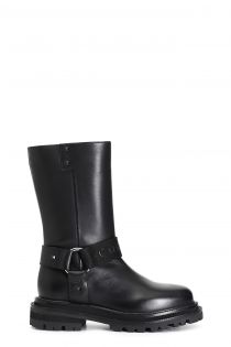 Bottines en cuir pour femme avec une bride amovible à la cheville ornée d'un ruban noir distinctif du logo cafènoir et de cabochons à la mode. la semelle intérieure est en cuir.