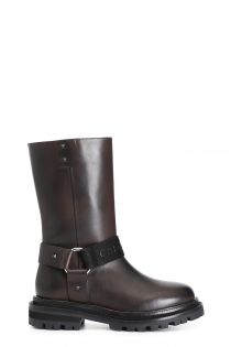 Bottines en cuir pour femme avec une bride amovible à la cheville ornée d'un ruban noir distinctif du logo cafènoir et de cabochons à la mode. la semelle intérieure est en cuir.