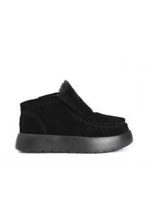 Bottine pour femme avec semelle surélevée et surpiqûres. dessus en daim et doublure en fourrure synthétique.