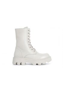 Bottines pour femme unicolores en cuir à lacets. semelle intérieure et semelle « char d’assaut » en cuir.