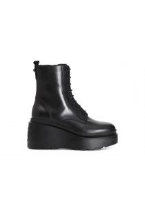 Bottines en cuir à lacets pour femme avec plateforme et talon. semelle intérieure en cuir et semelle compensée personnalisée avec logo en relief à l’arrière.