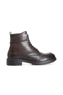 Bottines en cuir à lacets pour homme. la tige est caractérisée par une couture ornementale. la semelle intérieure est en cuir.