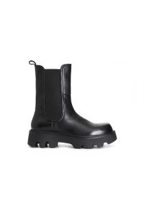 Bottines pour femme unicolores en cuir avec élastique sur le côté. semelle intérieure et semelle « char d’assaut » en cuir.
