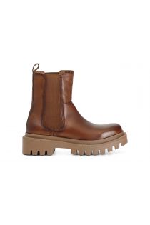 Bottines en cuir pour femme avec élastique sur le côté. semelle intérieure en cuir. semelle « char d’assaut » en caoutchouc et talon de 40 mm.