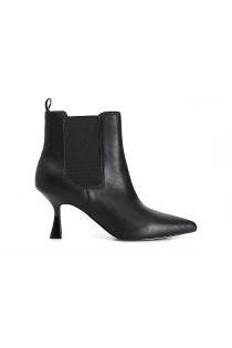 Bottines en cuir pour femme avec un talon de 80 mm à la forme effilée. elastiques latéraux pour faciliter l'enfilage. la semelle intérieure est en cuir.