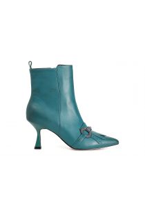Bottines en cuir pour femme. chaussures au charme rétro grâce aux détails : forme effilée attache et frange sur la tige. talon de 80 mm.