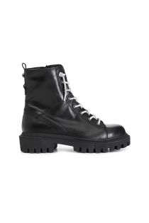 Bottines pour femme en cuir à lacets ornés de strass ultra-brillants. la semelle intérieure est en cuir. la semelle « char d’assaut » dans un matériau ultraléger valorise le modèle et le rend ultra-contemporain.