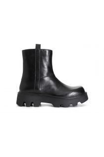 Bottines en cuir unicolore pour femme avec fermeture éclair sur le côté. semelle intérieure et semelle « char d’assaut » en cuir.
