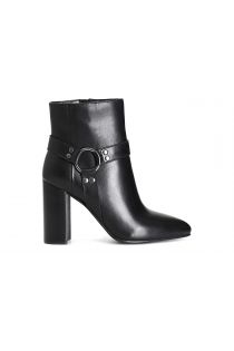 Bottine en cuir pour femme de forme fine avec accessoire éperon. fermeture éclair à l'intérieur de la chaussure. la semelle intérieure est en cuir. talon haut de 95 mm.