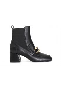 Bottine en cuir pour femme avec élastique et accessoire. talon épais de 60 mm de haut. la semelle intérieure est en cuir.