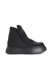 Bottine pour femme à semelle surélevée. dessus en cuir et doublure en fourrure synthétique.