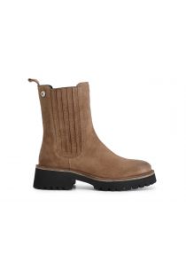 Bottines en croûte de cuir avec bande élastique cachée talon haut de 50 mm et cabochon personnalisé. la semelle intérieure est en cuir.
