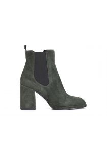Bottines en daim pour femme. elastique sur les deux côtés pour un enfilage facile. talon carré de 85 mm et semelle intérieure en cuir.