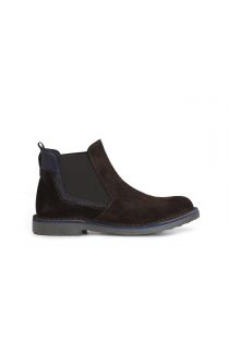 Bottines pour homme en daim avec élastique latéral et inserts en cuir. tige cousue à la semelle. semelle intérieure en cuir.