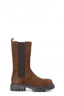 Bottines 3/4 en daim pour femme avec élastique et fermeture éclair latérale pour faciliter l'enfilage. talon de 35 mm. semelle intérieure en cuir. semelle « char d’assaut ».