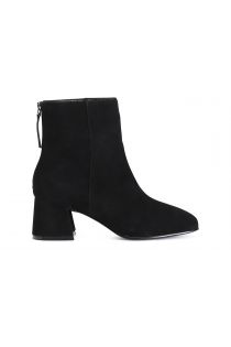 Bottines en daim pour femme. fermeture éclair à l’arrière pour faciliter l'enfilage. le talon est de 55 mm et la semelle intérieure est en cuir.
