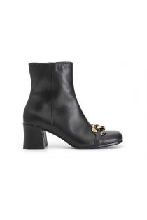 Bottines pour femme en cuir nappa souple avec attache sur la tige et semelle intérieure en cuir. des chaussures confortables au style innovant et raffiné mais aussi très féminin. la pointe et le talon sont carrés.