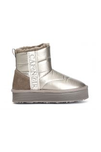 Bottines en nylon agrémentée d'un ruban logo cafènoir en strass la doublure est en fourrure synthétique. plateforme de 35 mm de haut