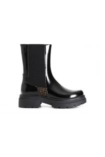 Bottines pour femme en similicuir brossé avec élastique latéral sur la tige agrémenté d'un insert en poulain. la semelle intérieure est en cuir.