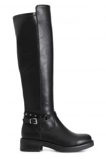 Bottes stretch pour femme avec bracelet de cheville amovible à lanières cloutées et une boucle ornementale. la semelle intérieure est en cuir.