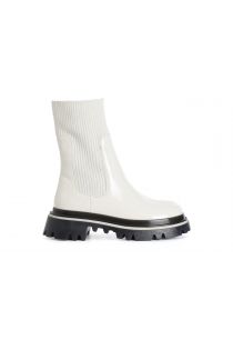 Bottines en cuir verni pour femme. leggings en tricot effet chaussette. semelle en caoutchouc talon de 40 mm.