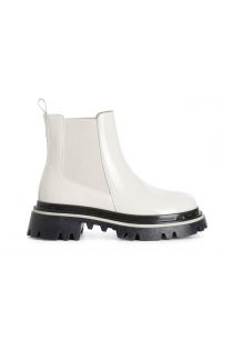 Bottines à effet verni pour femme. élastique latéral pour faciliter l'enfilage. semelle en caoutchouc talon de 40 mm.