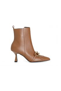 bottine femme en cuir avec accessoire et talon de 70 mm tan