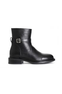 Bottine en cuir pour femme avec bride et boucle. le talon mesure 30 mm de haut.