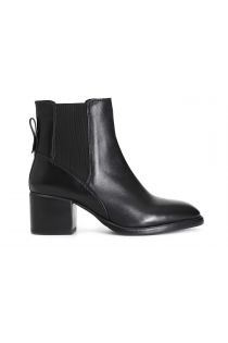 Bottine pour femme en cuir avec élastiques latéraux. avec une forme légèrement arrondie. talon haut de 60 mm. la semelle intérieure est en cuir. son goût très chic vous permet de le porter avec n'importe quel vêtement pour toute occasion du quotidien ou du soir.