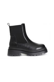 Bottine femme en cuir avec bandes élastiques latérales pour faciliter l'enfilage. talon haut de 55 mm. la semelle intérieure est en cuir.