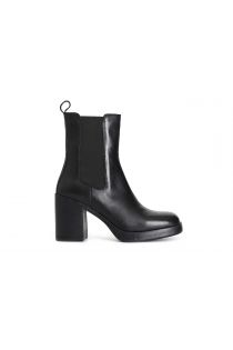 Bottine en cuir pour femme avec bandes élastiques pour faciliter l'ajustement. talon haut de 85 mm. la semelle intérieure est en cuir.