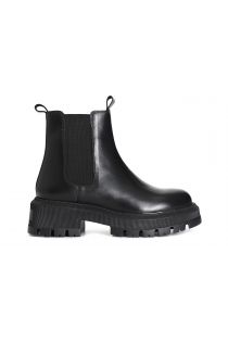 Bottine femme en cuir avec bandes élastiques latérales pour faciliter l'enfilage. talon haut de 55 mm. la semelle intérieure est en cuir.