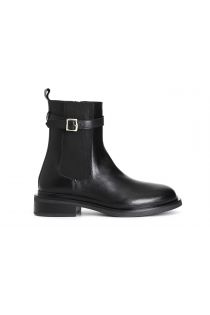 bottine femme en cuir avec élastique et boucle black