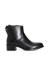 Bottine pour femme en cuir avec laçage décoré à l'arrière. chaussure de forme arrondie. fermeture éclair à l'intérieur. talon épais de 40 mm de haut.