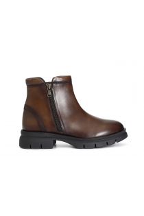 Bottine pour femme en cuir avec fermeture éclair extérieure ornementale de forme arrondie. la fermeture éclair est à l'intérieur. talon de 40 mm.