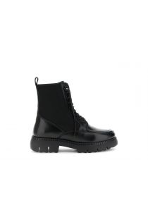 bottine femme en cuir fermée par lacets élastiques et strass black