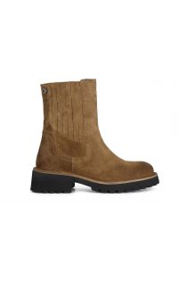 Bottine en daim avec élastique recouvert de clou personnalisé. talon haut de 50 mm. la semelle intérieure est en cuir.