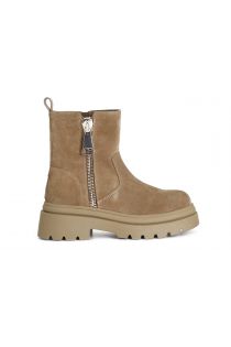 Bottine pour femme en daim avec maxi zip ornemental. la fermeture éclair est une partie interne de la chaussure. talon haut de 55 mm. la semelle intérieure est en cuir.