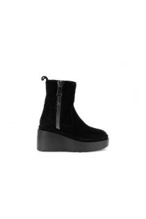 bottine femme en daim avec maxi zip et plateau black