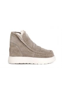 Bottine pour femme à semelle surélevée. dessus en daim et doublure en fourrure synthétique.