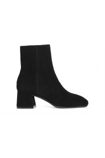 Bottine pour femme en daim de forme arrondie. fermeture éclair à l'intérieur de la chaussure. la semelle intérieure est en cuir. talon épais de 60 mm de haut.