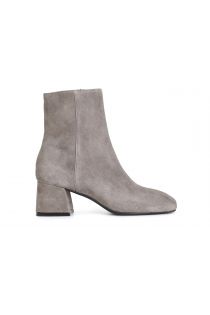 Bottine pour femme en daim de forme arrondie. fermeture éclair à l'intérieur de la chaussure. la semelle intérieure est en cuir. talon épais de 60 mm de haut.