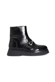 Bottine femme en naplak avec accessoire personnalisé sur la boucle. fermeture éclair à l'intérieur de la chaussure. la semelle intérieure est en cuir.