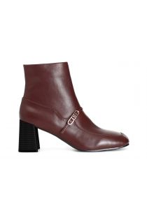 Bottine femme en nappa avec boucle personnalisée. fermeture éclair à l'intérieur. chaussure confortable au style innovant et raffiné ainsi que très féminine. la pointe et le talon de 65 mm sont carrés. la semelle intérieure est en cuir.