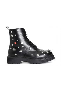 bottine femme lacée avec clous à motifs black