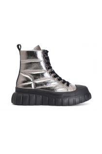 Bottines de sport à lacets pour femme. tige en tissu lamé avec rembourrage matelassé. semelle surélevée présentant un motif strié distinctif.