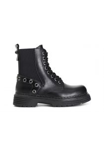 Bottines à lacets pour femme en similicuir avec élastique sur le côté de la jambe et motif composé d'œillets.