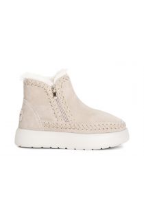 Bottine pour femme avec semelle surélevée surpiqûres et double zip. dessus en daim et doublure en fourrure synthétique.
