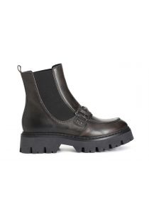 Bottine avec élastique en cuir brossé et pince sur la boucle. la semelle intérieure est en cuir. la semelle débardeur en matière extralégère rationalise le modèle et le rend hyper actuel.