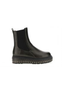 Bottines en similicuir brossé à effet métallisé, élastiques sur les côtés et semelle intérieure en cuir. La semelle cloutée de 3,5 cm leur confère un style audacieux et tendance.
